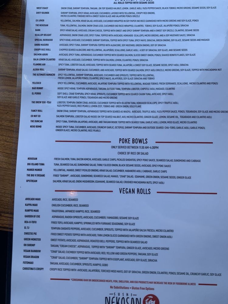 Sushi Nekosan welcomes diners with a delightful array of flavors that showcase the best of Japanese cuisine. This cozy venue in San Diego offers a dynamic menu that is both rich and accessible, featuring vegan and vegetarian options to cater to diverse palates. Whether you're savoring their expertly crafted sushi rolls or indulging in other traditional dishes, each bite promises a fresh, authentic experience.